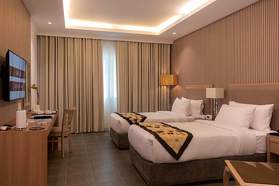 The spacious air-conditioned double room features a mini-bar, a tea and coffee maker and a safe deposit box. The unit has 2 beds.